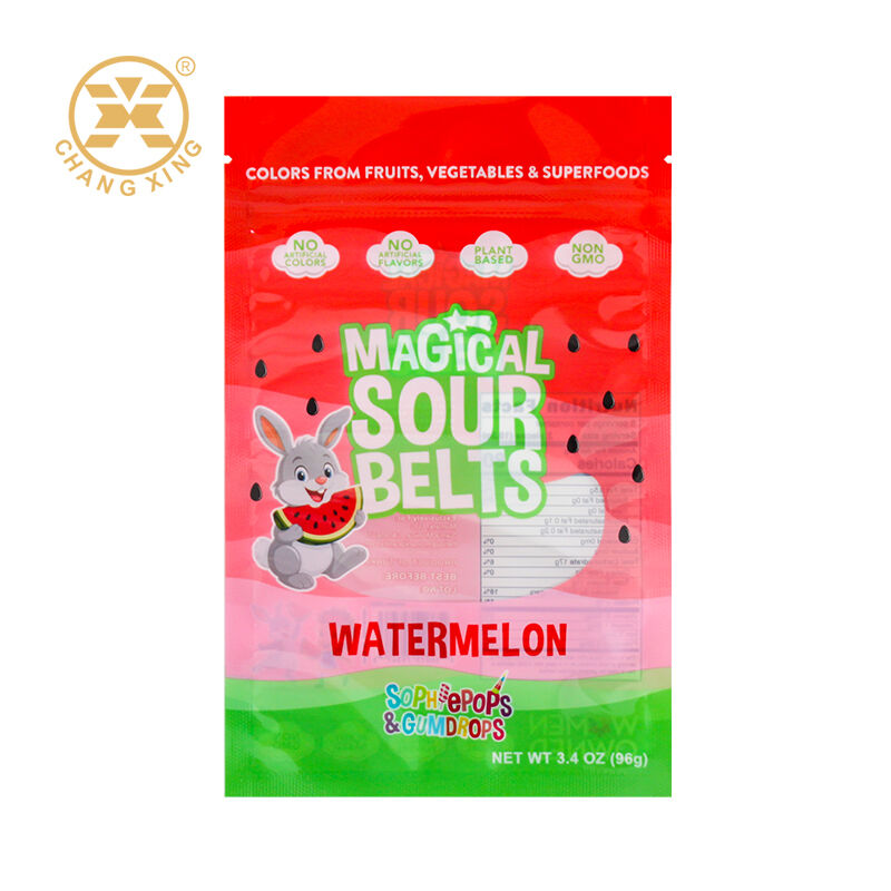 قوائم التجزئة الرقمية منخفضة الجودة الطباعة الغذائية الحلوى أكياس التعبئة العادية الشعار المطبوع سحب القفل قفز أكياس الحلوى